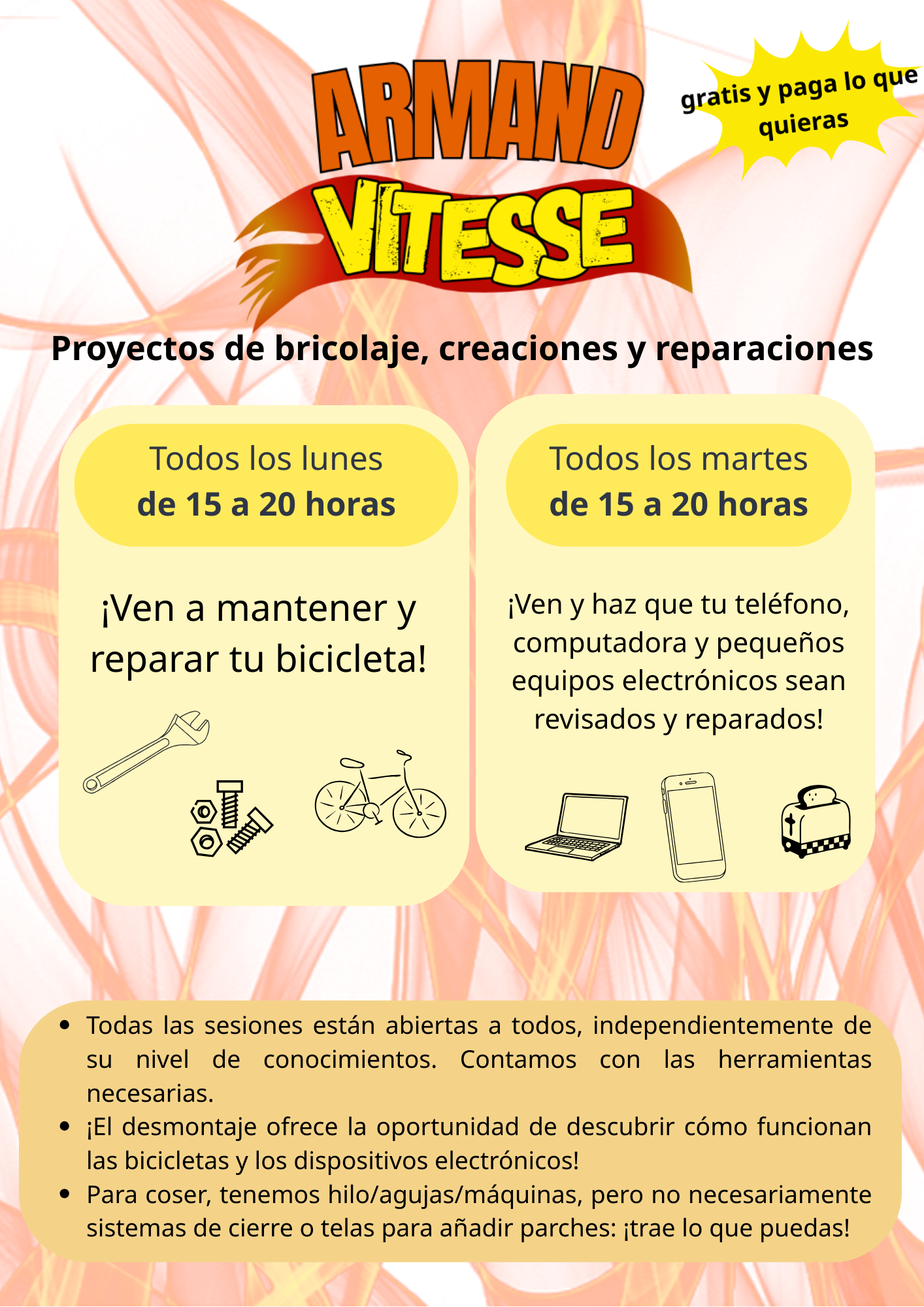 Taller de desmontaje de bicicletas y desoldadura de componentes electrónicos 🔥, para comprender cómo funciona todo y recuperar piezas de repuesto útiles para el taller.